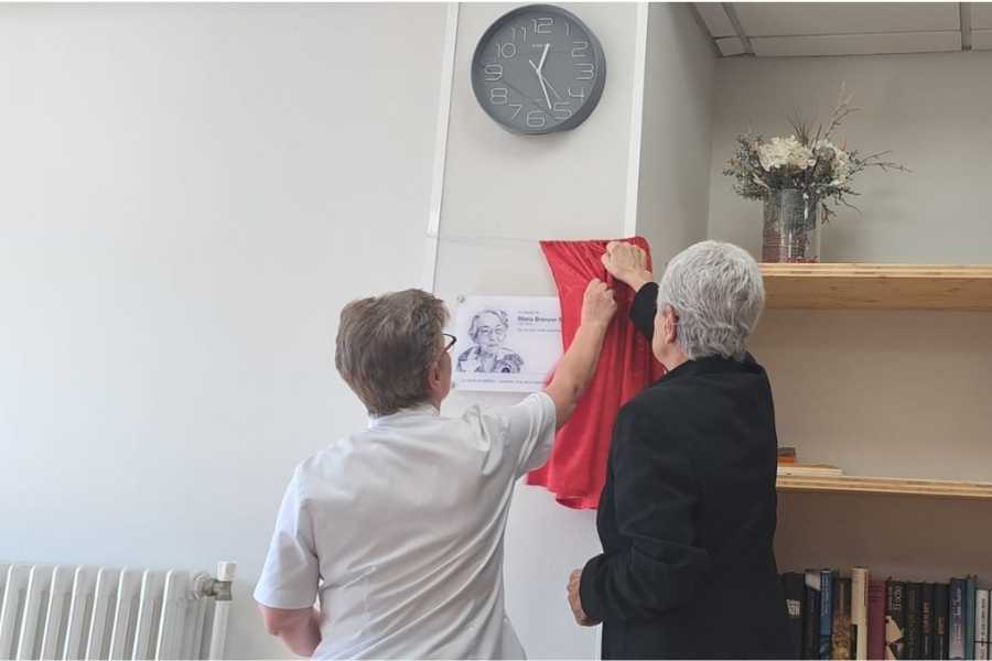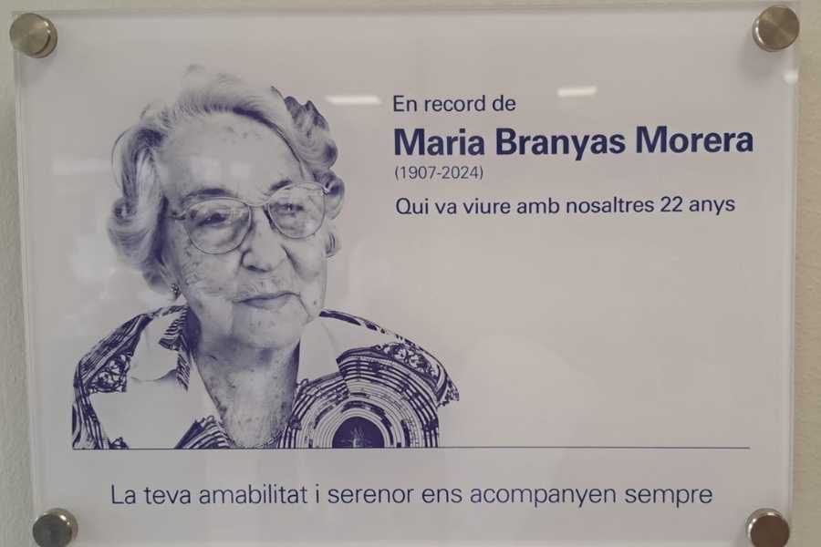 Esta placa da nombre a una de las salas donde Maria Branyas pasó largas horas, “donde ella hacía vida”, explican quienes la cuidaron, y responde a la voluntad de la Residència Santa Maria del Tura de dejar constancia de su huella imborrable y conservar su esencia entre quienes la conocieron.